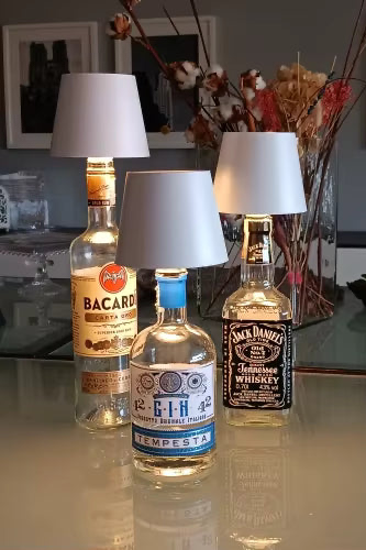 For best results, use glass bottles with an opening that comfortably supports the lamp base.